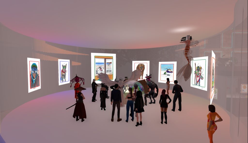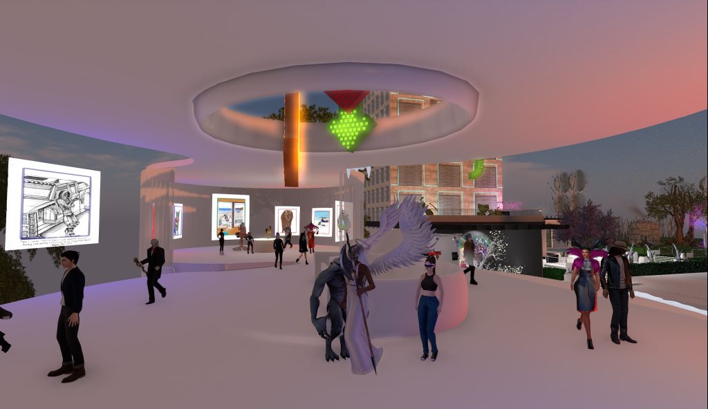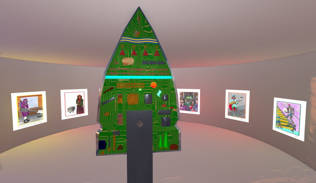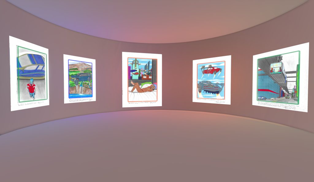 For this exhibition, AbTeC Gallery’s transmediation team brought the artist’s drawings into the virtual realm. His pictures of flying cars, cybernetic wearables and robot pets have inspired 3D objects that gallery visitors can interact with, allowing their avatars to experience the hi-rez life