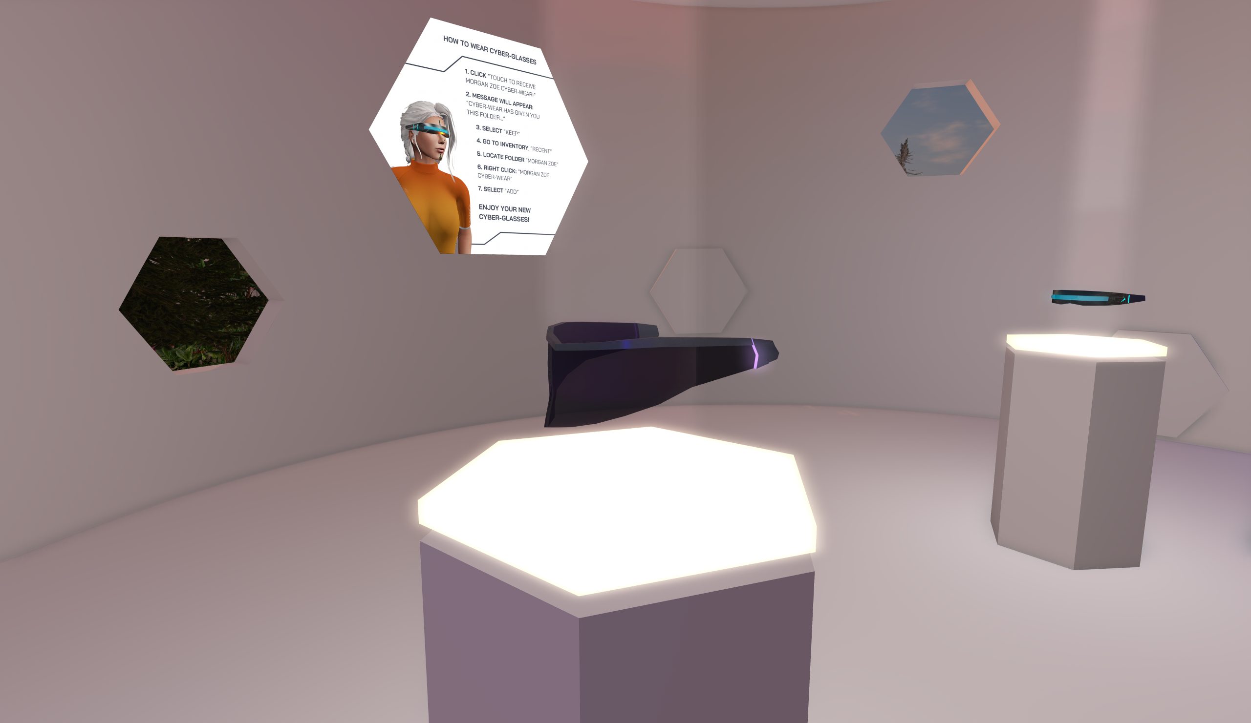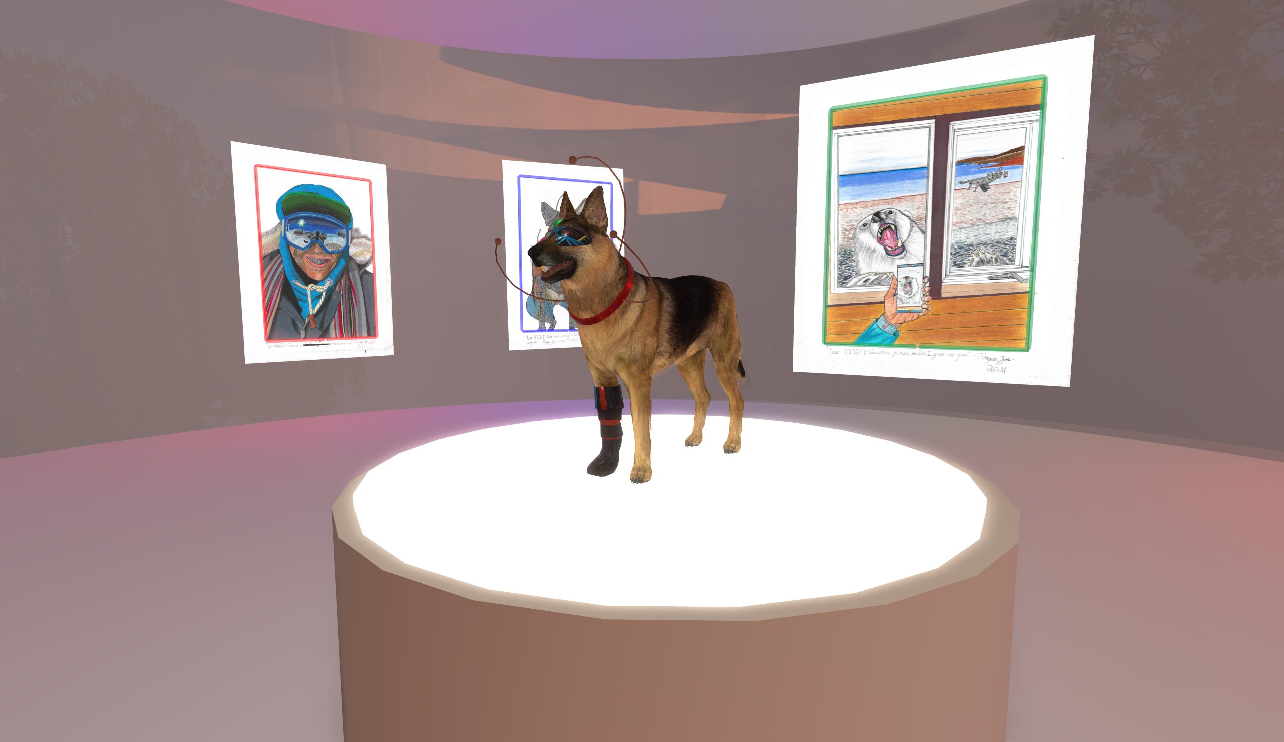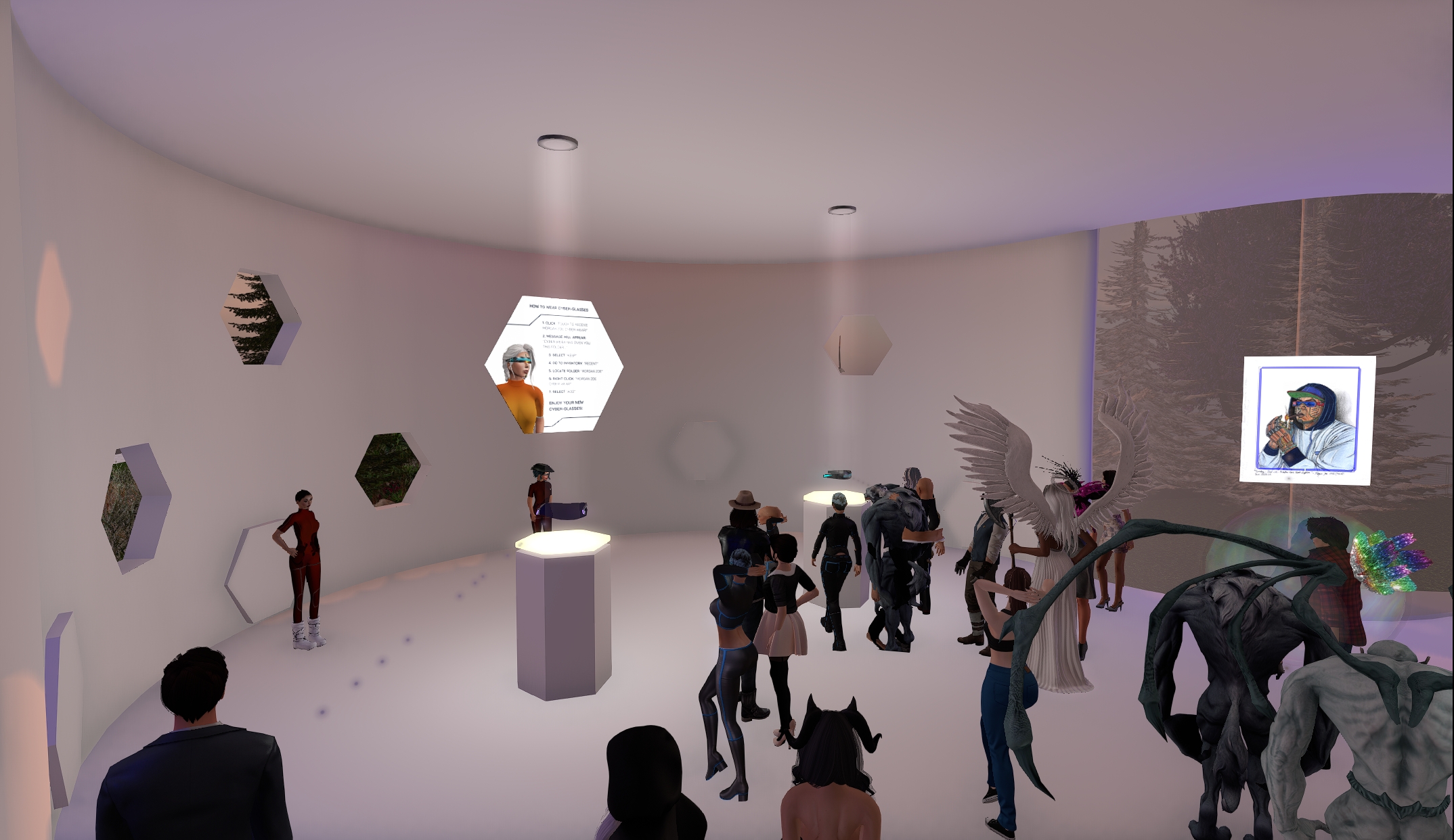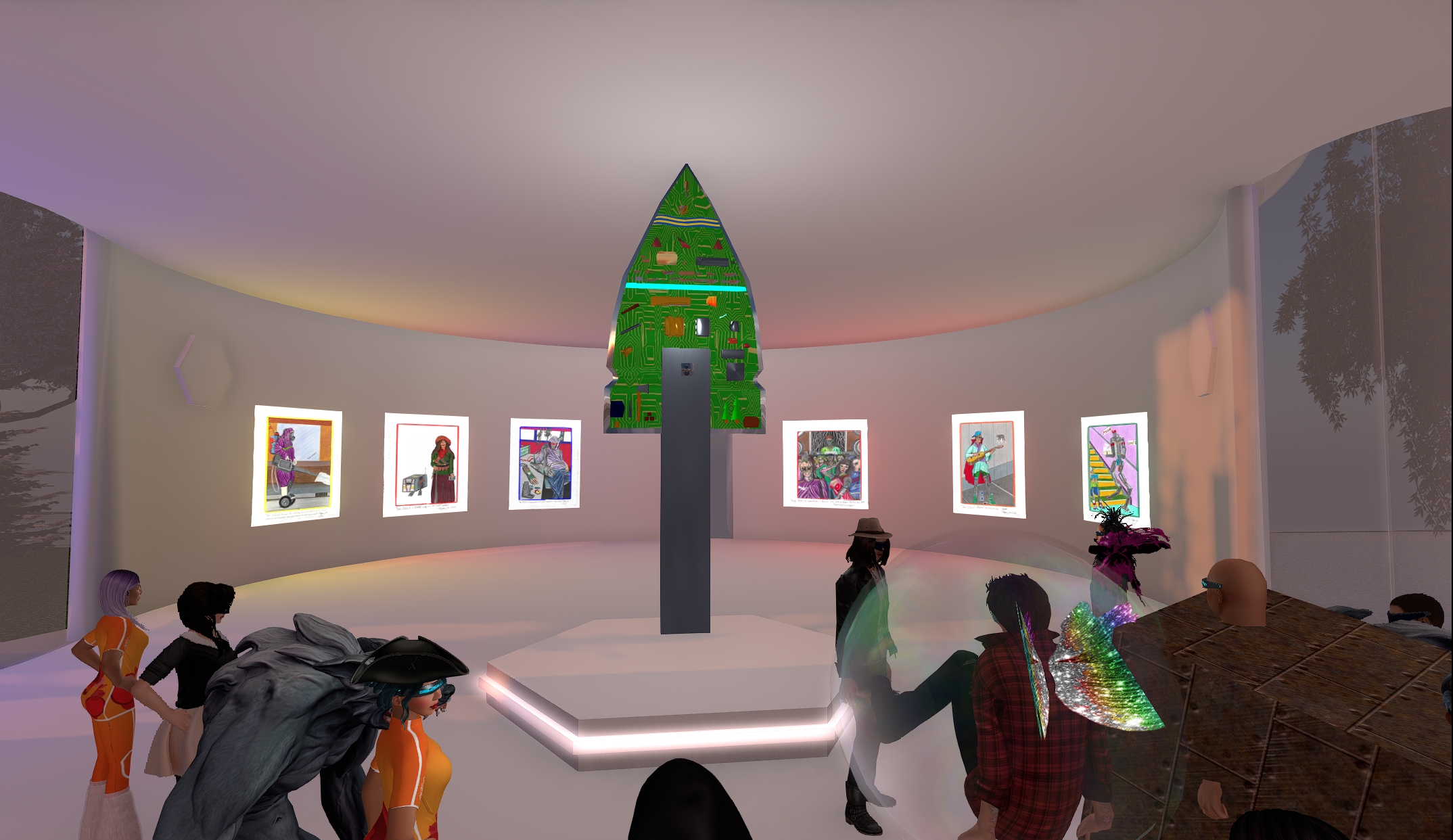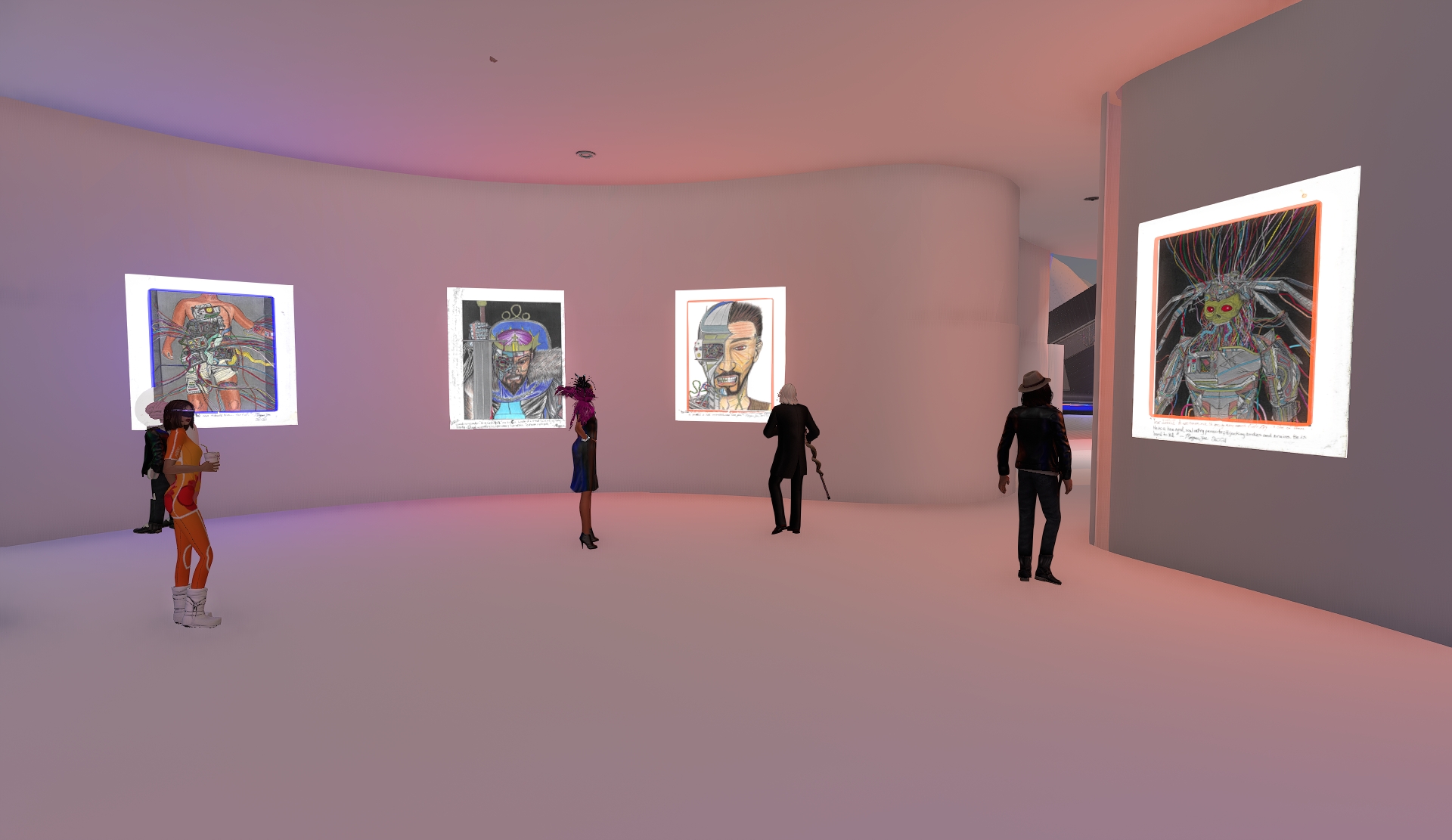 For this exhibition, AbTeC Gallery’s transmediation team brought the artist’s drawings into the virtual realm. His pictures of flying cars, cybernetic wearables and robot pets have inspired 3D objects that gallery visitors can interact with, allowing their avatars to experience the hi-rez life