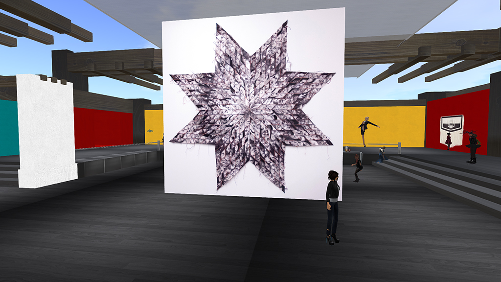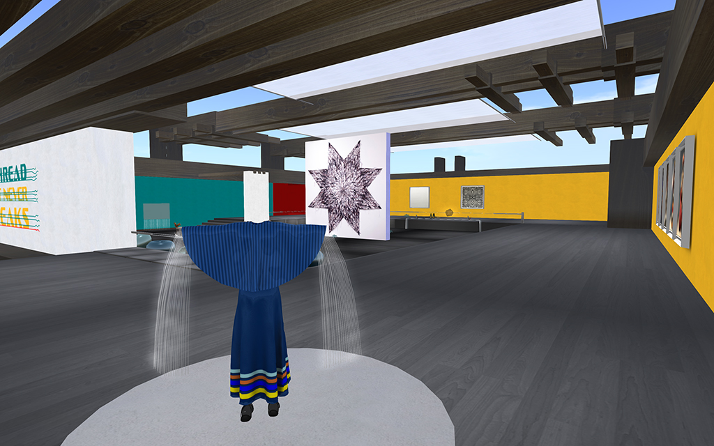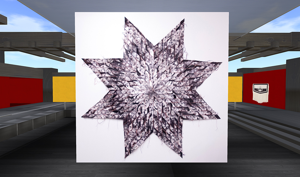 Originally scheduled to open in Toronto in Spring 2020, the exhibition had to adapt to the dramatic change to our lived realities as a result of the pandemic. Transmediation is the term for bringing an artwork from one medium to another. The artists transmediated their physical threads into pixels, polygons and lines of code for this virtual exhibition, each doing so slightly differently.