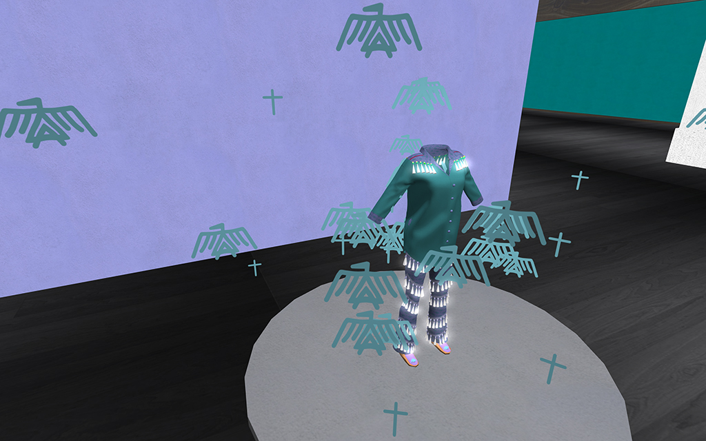Jaad Kuujus (Meghann O’Brienn). Wrapped in the Cloud. 2018. In A Thread That Never Breaks, 28 January – 20 July 2021. Machinimagraph credit: Anastasia Erickson.