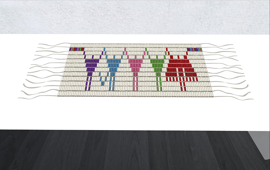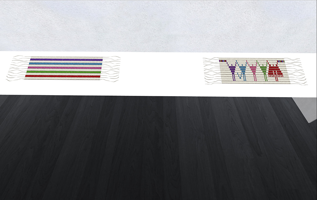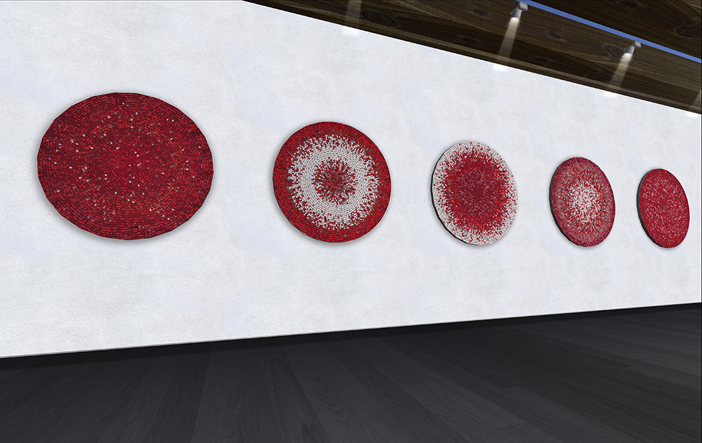 Nadia Myre. Meditations on Red. 2013. In Reformatted, 01 May to 04 September 2020. Machinimagraph credit: Skawennati.