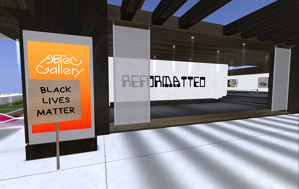 Reformatted is the inaugural exhibition of AbTeC Gallery, a once fictional space that has been repurposed for a new, pandemic reality. The artworks in it, never intended for Second Life, had to be imported, uploaded and sometimes digitally coaxed and cajoled to make it possible to show them in this particular virtual world. They are reformatted versions of their original selves—like all of us now, seeking new ways of being and speaking with each other, trying new ways to be together apart.