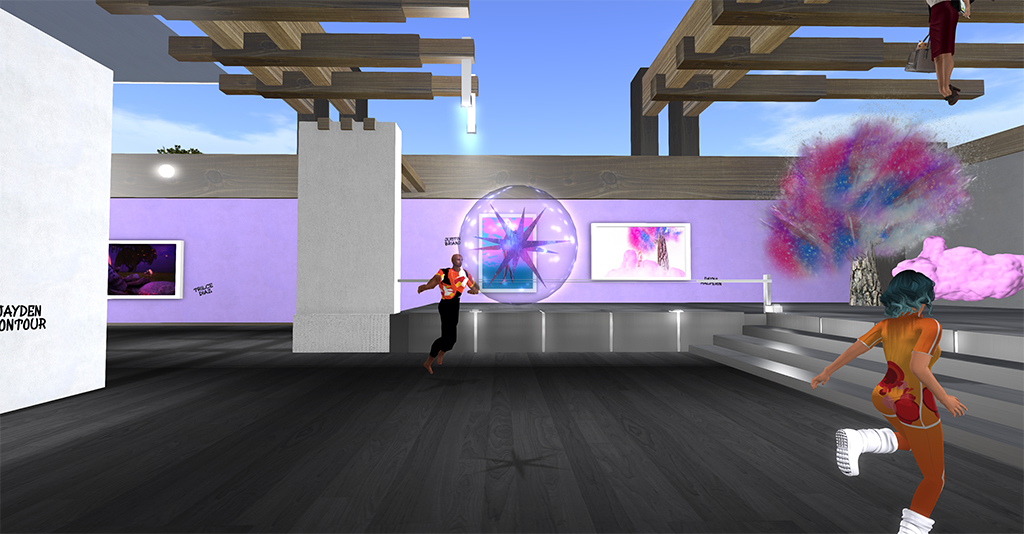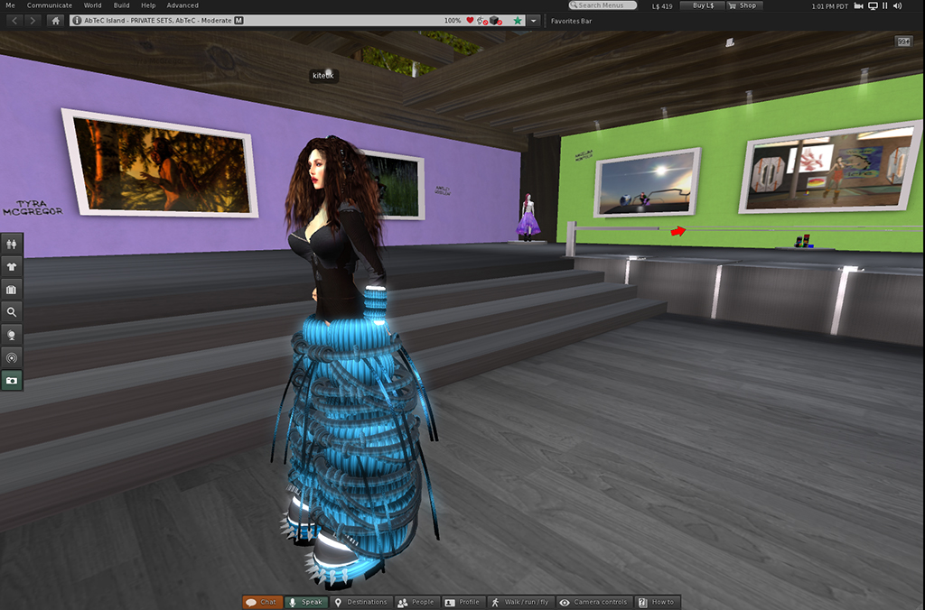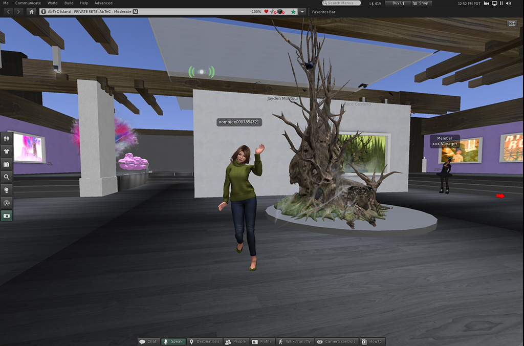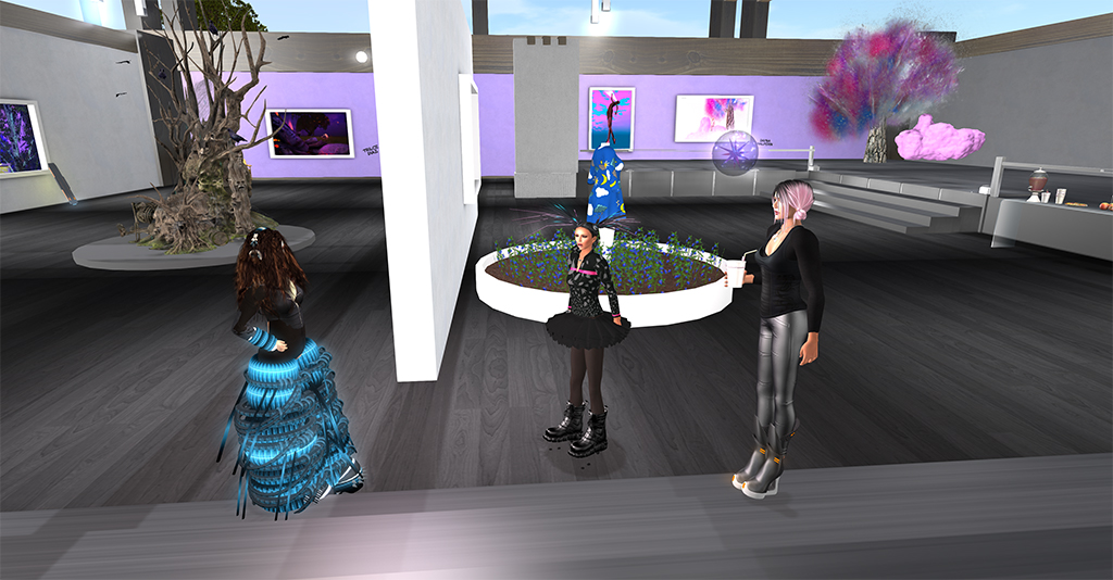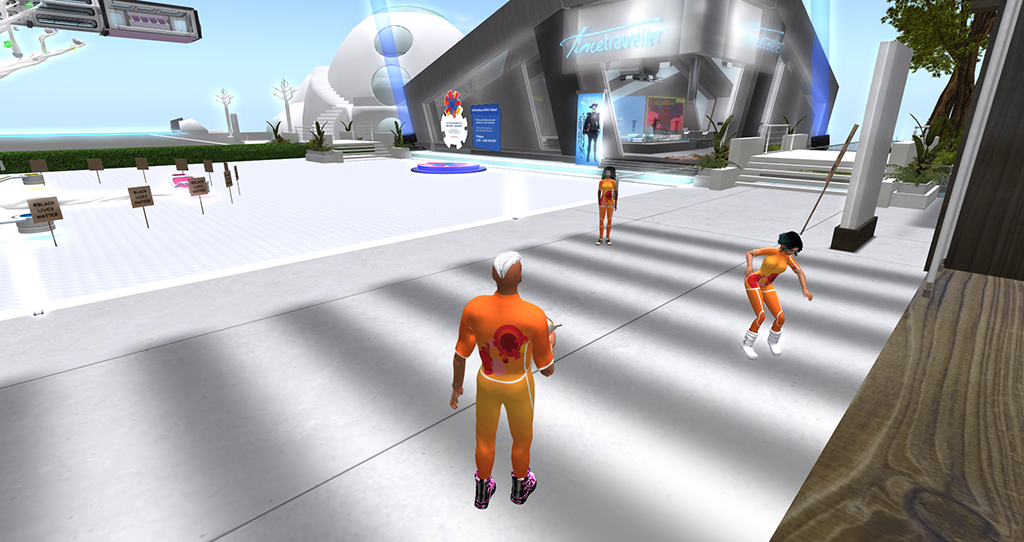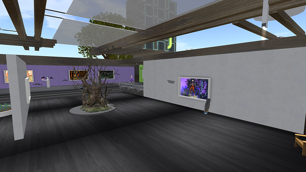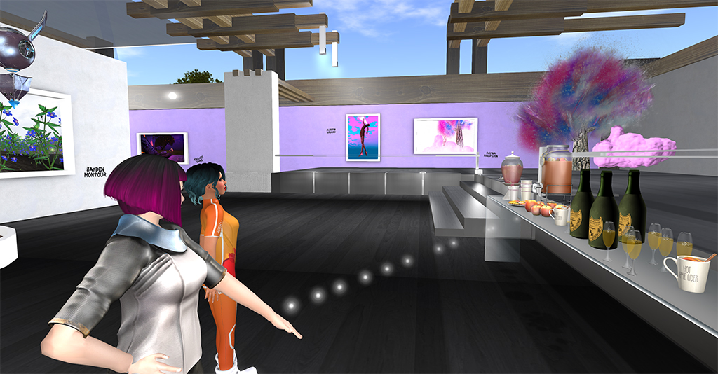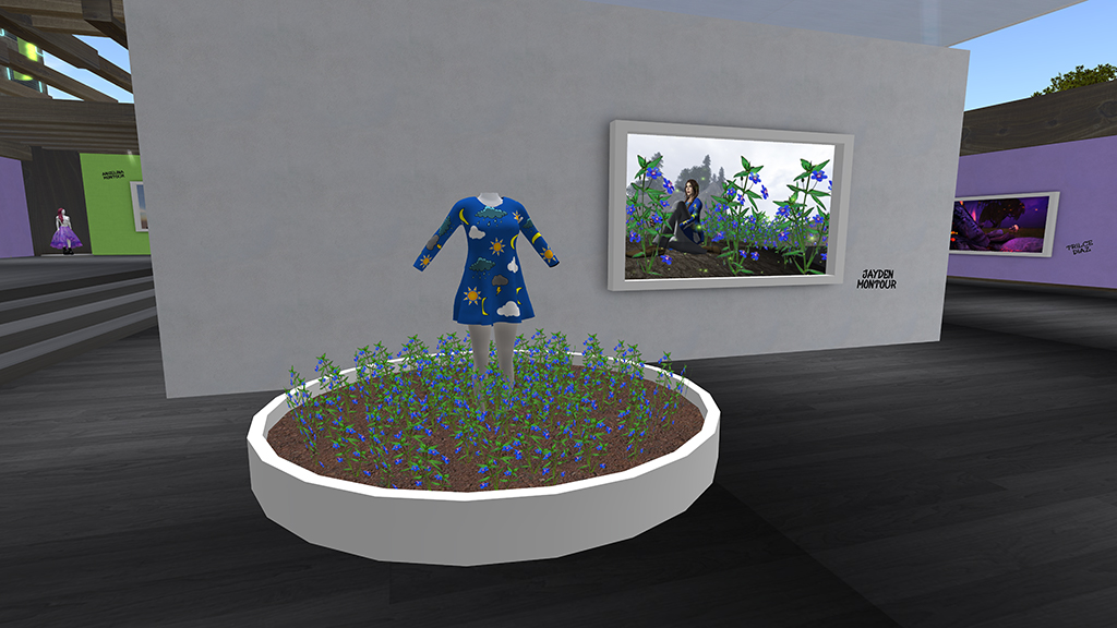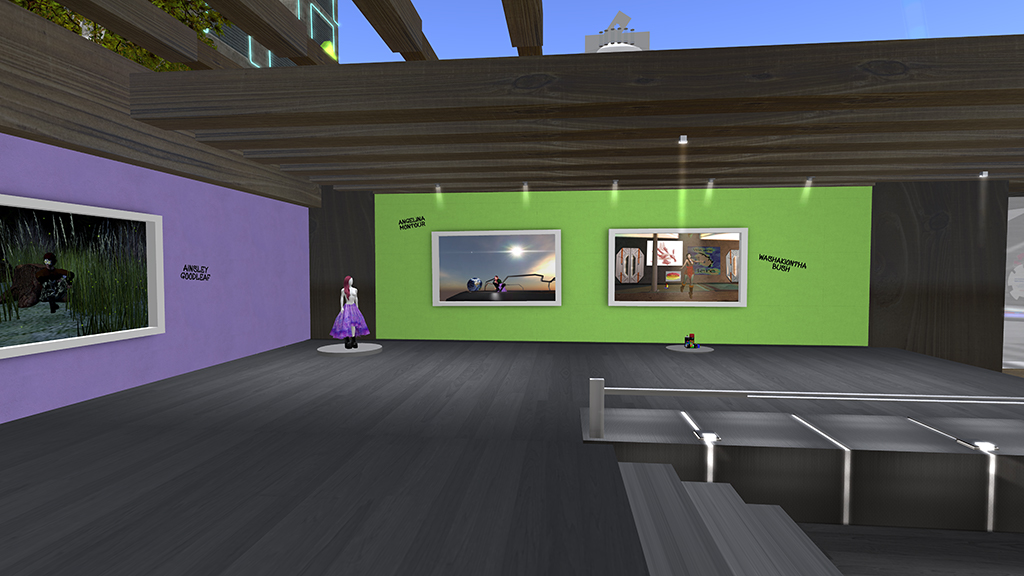 Over the course of one week in July 2019, the participants met up each morning at Concordia University. They started with good ol’ pencil and paper, and from there were guided into the 3D environment where they transmediated their 2D drawings into their very own avatars. In-world, they learned how to customize clothing, create mini-sets and capture pictures (called “machinimagraphs”). They were then taught how to use Photoshop to turn their portraits into these works of art.
