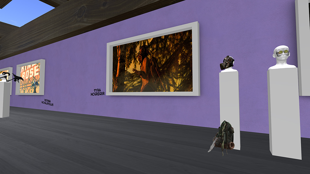 The portraits were printed and hung in a real-life exhibition during the Pop Montreal festival. We thought it would be exciting and very fitting to put them into our virtual gallery. Complementary to the portraits, 3D elements and accessories from each machinimagraph are on display.