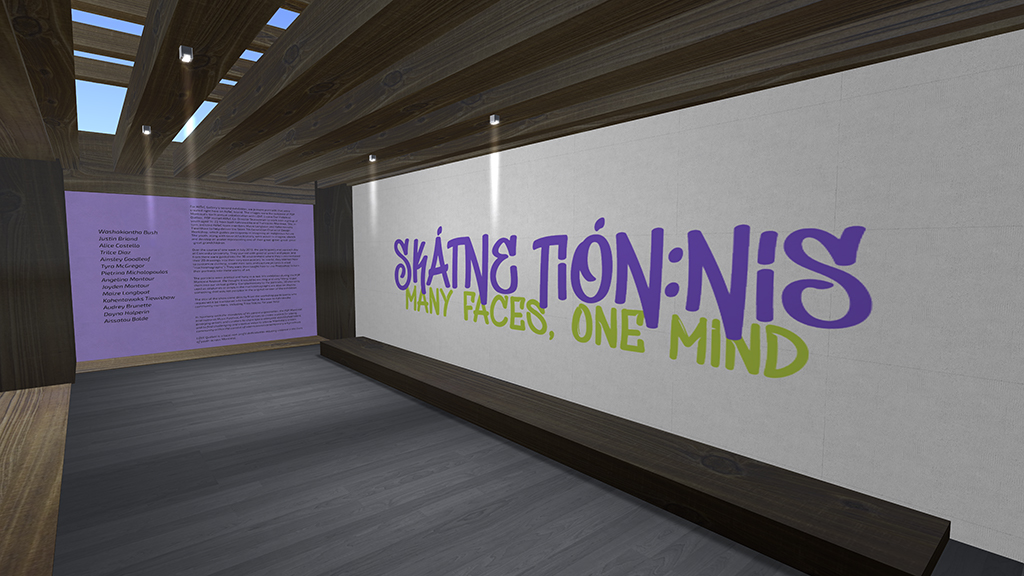 Skátne Tión:nis | Many Faces, One Mind [installation view]. 25 September 2020 – 15 January 2021. Machinimagraph credit: Longboat.